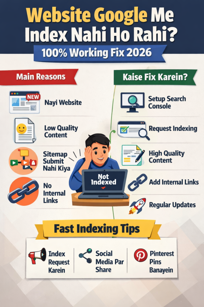 Is detailed guide me hum step-by-step samjhenge ki website index kyu nahi hoti, aur sabse important kaise aap apni website ko fast Google me index karwa sakte ho. Website Google Me Index Nahi Ho Rahi? 100% Working Fix (2026 Guide)